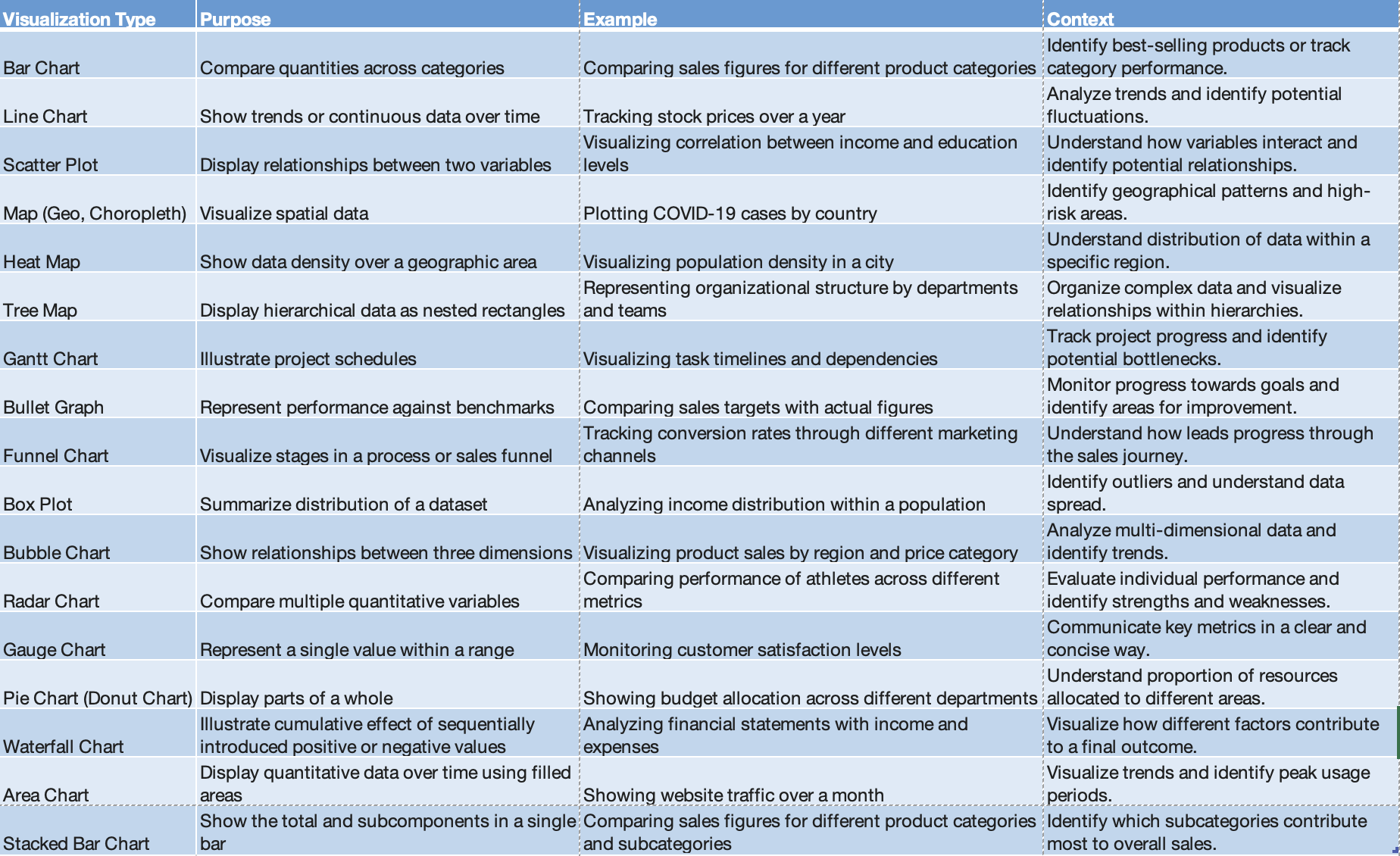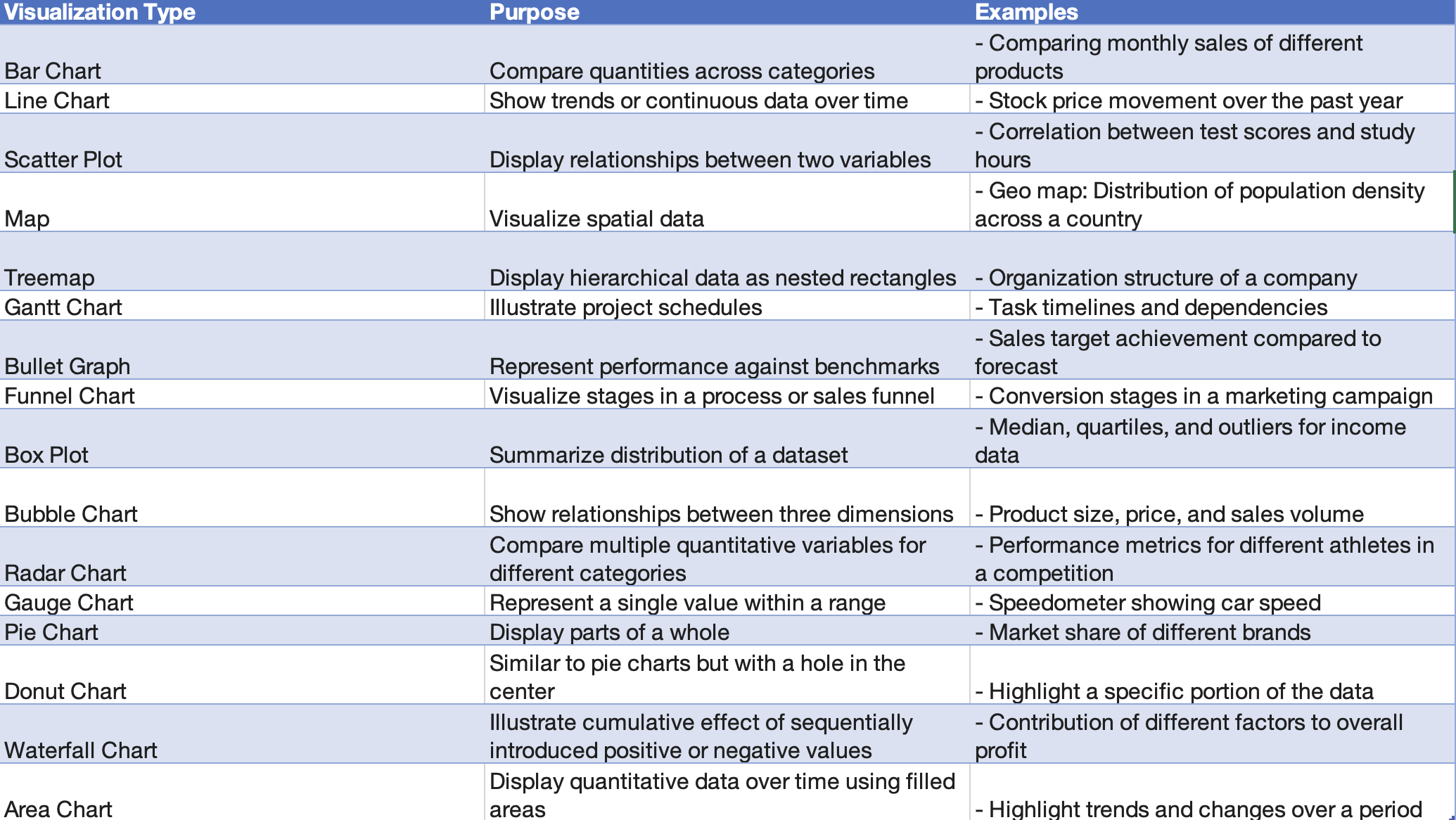 Commonly used Visualizations