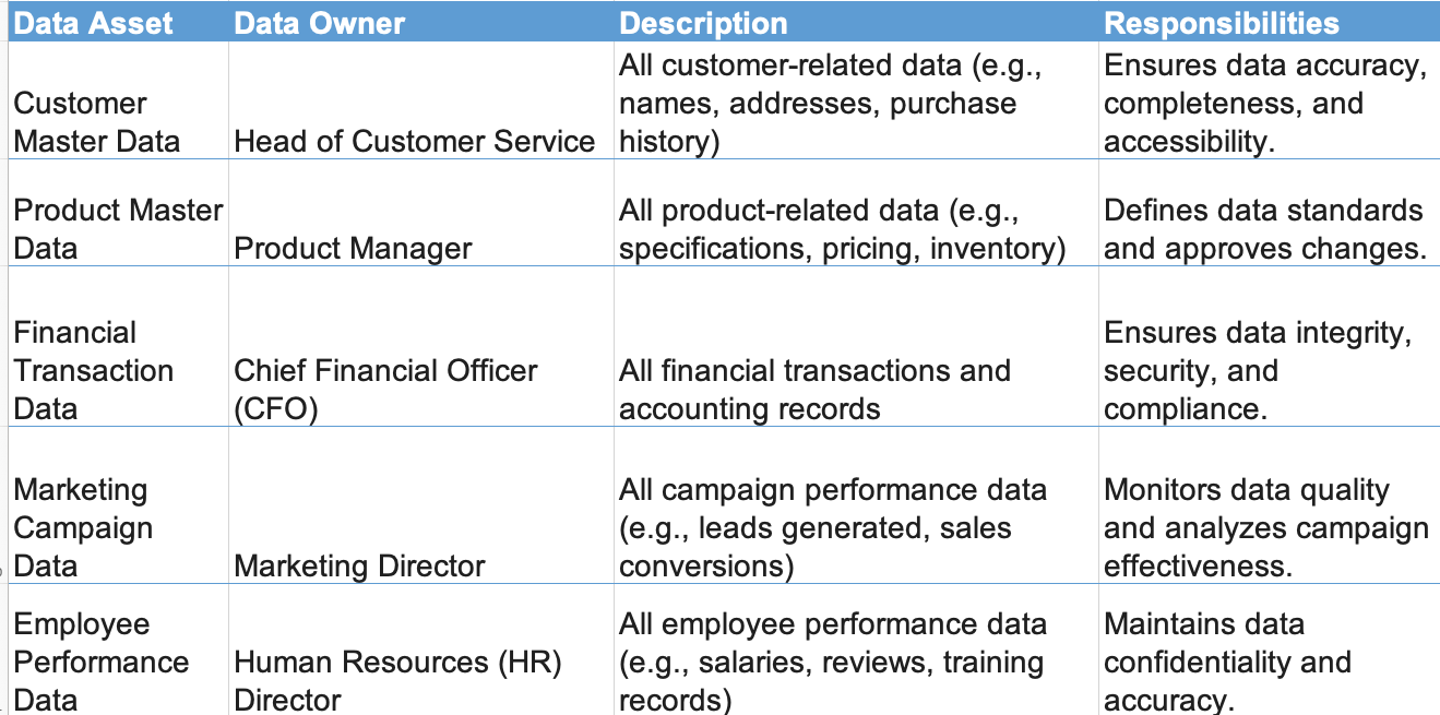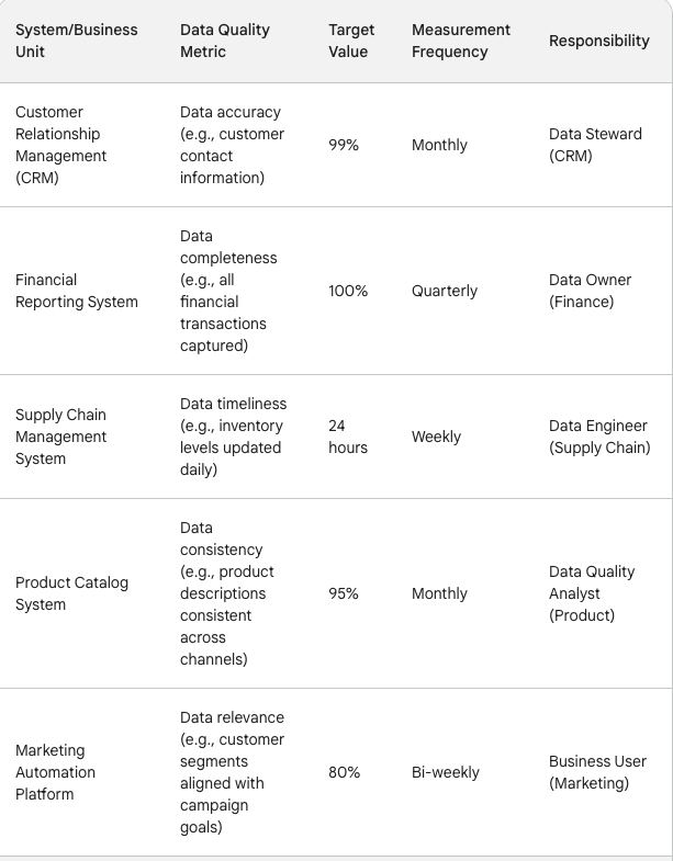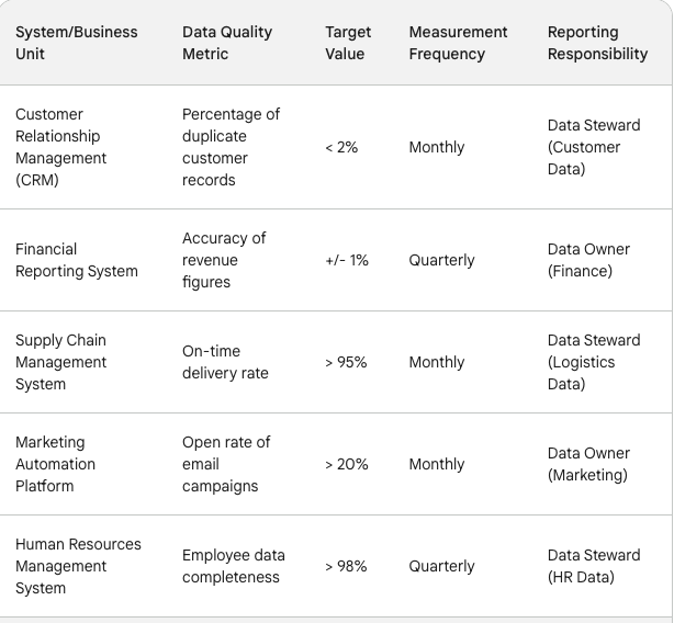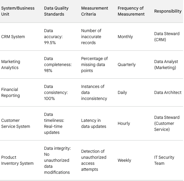 Data Ownership MatrixService-Level Agreements (SLAs): Data Quality Standards