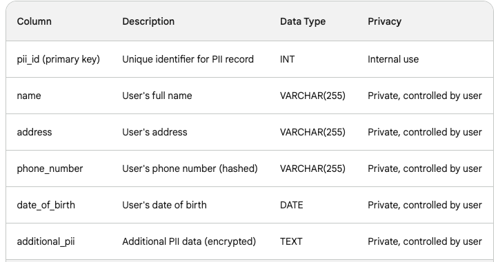 Table to Store Anonymous User InformationAgain, additional columns like employer information, city lived, visited and so on.