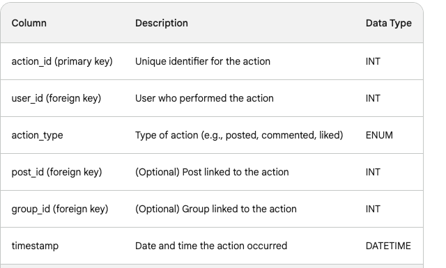 Data Model: Define your data model considering the entities (users, posts, friends, groups, etc.) and their relationships. Choose a schema like Avro or Parquet for efficient storage and retrieval.