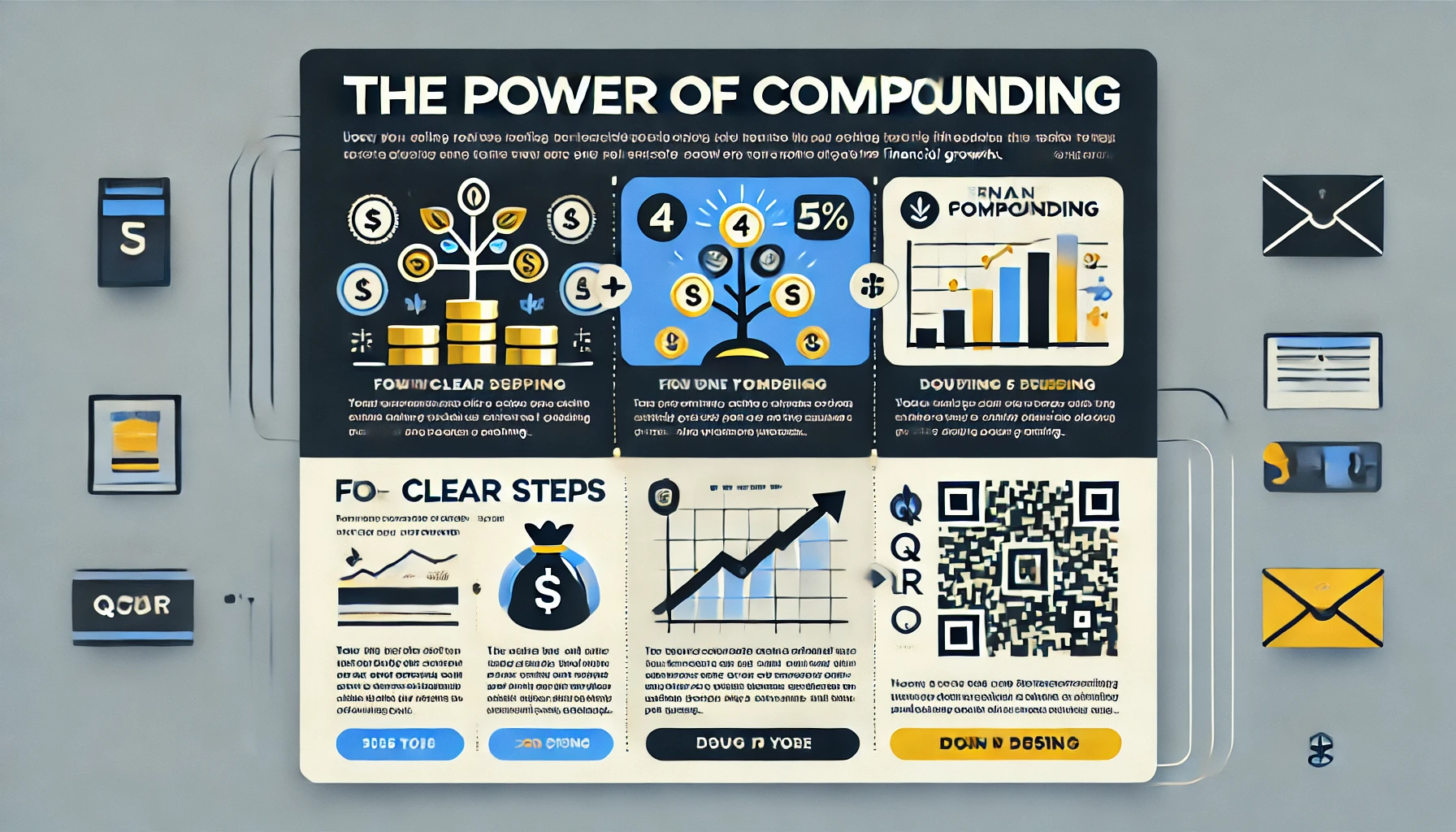 Captivating Message: The phrase "The Power of Compounding" from The Psychology of Money by Morgan Housel is impactful and aligns well with the theme of wealth-building. However, the design doesn’t fully leverage this strong message.