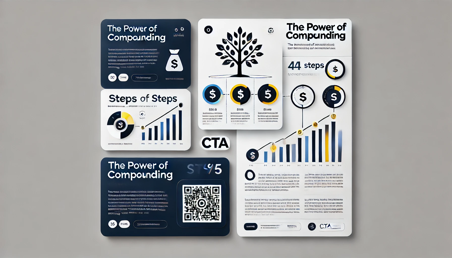 UI Appeal: The existing design incorporates simple icons and clearly outlines the four steps, providing a structured and clear flow. It communicates the idea of compounding effectively.