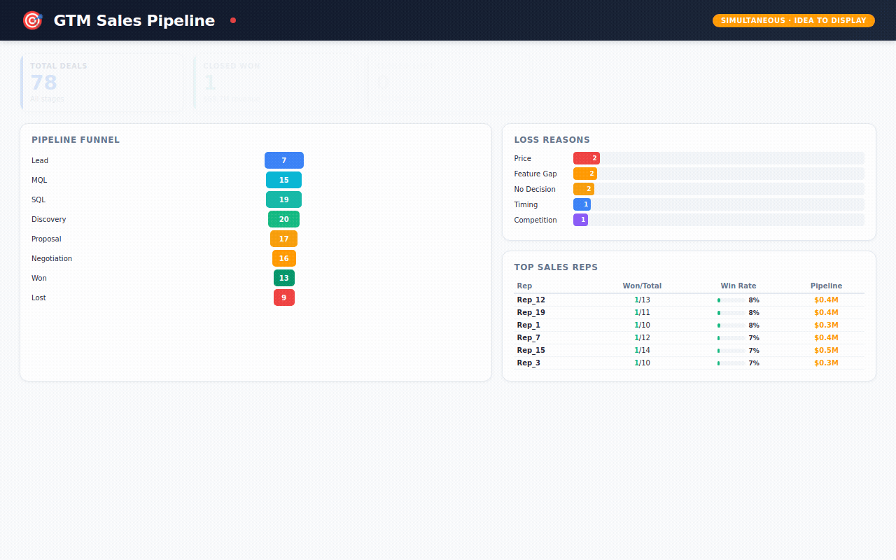 4. Sample data changes the sales conversation. When you can show a prospect a working dashboard with realistic data in their industry — not mockups, not wireframes, an actual running system — the conversation shifts from "Can your team do this?" to "When can we start?"