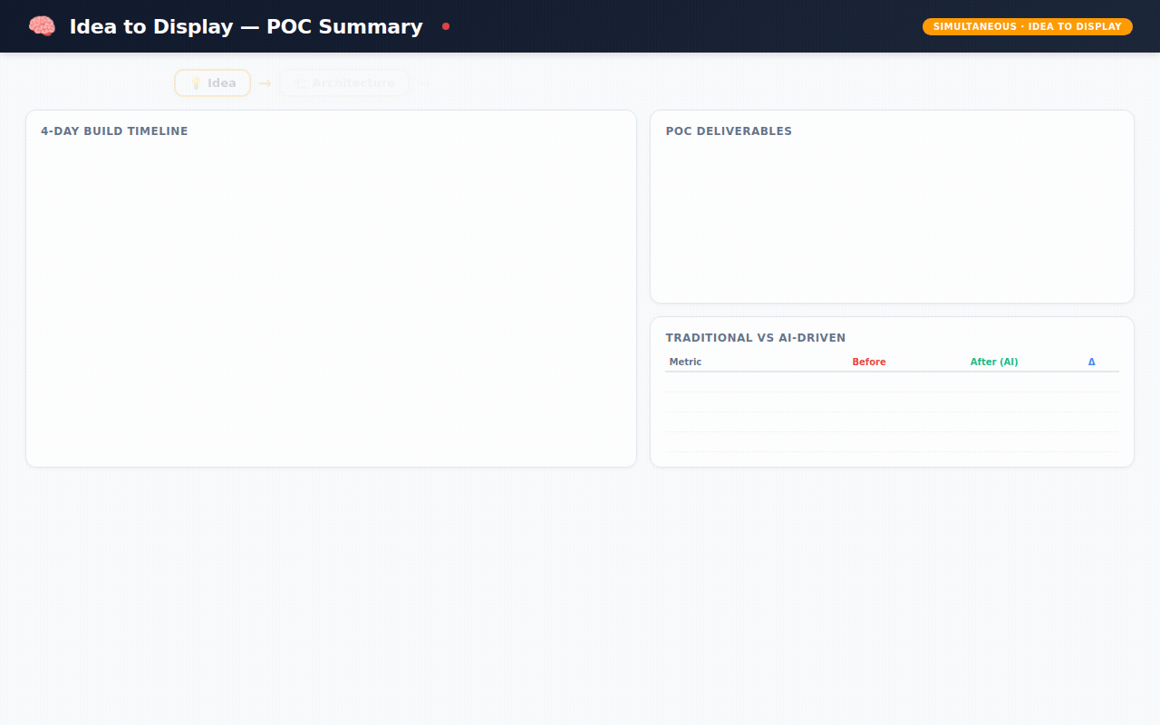 5. The real disruption isn't the technology. It's the timeline. A 14-month project has organizational gravity. It accumulates stakeholders, scope creep, steering committees, and change requests. A 4-day POC is too fast for bureaucracy to interfere. You build it, show it, and decide. That velocity changes everything about how enterprise software gets adopted.