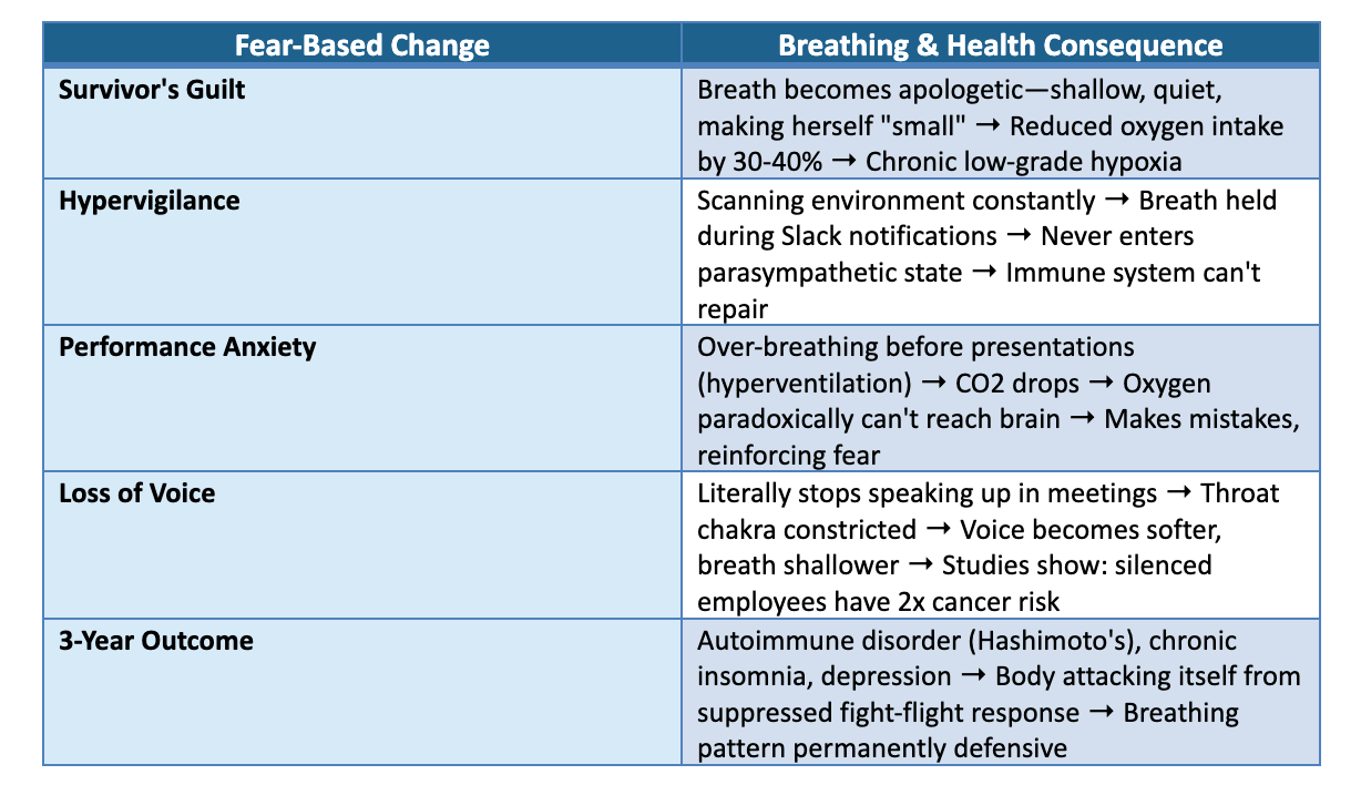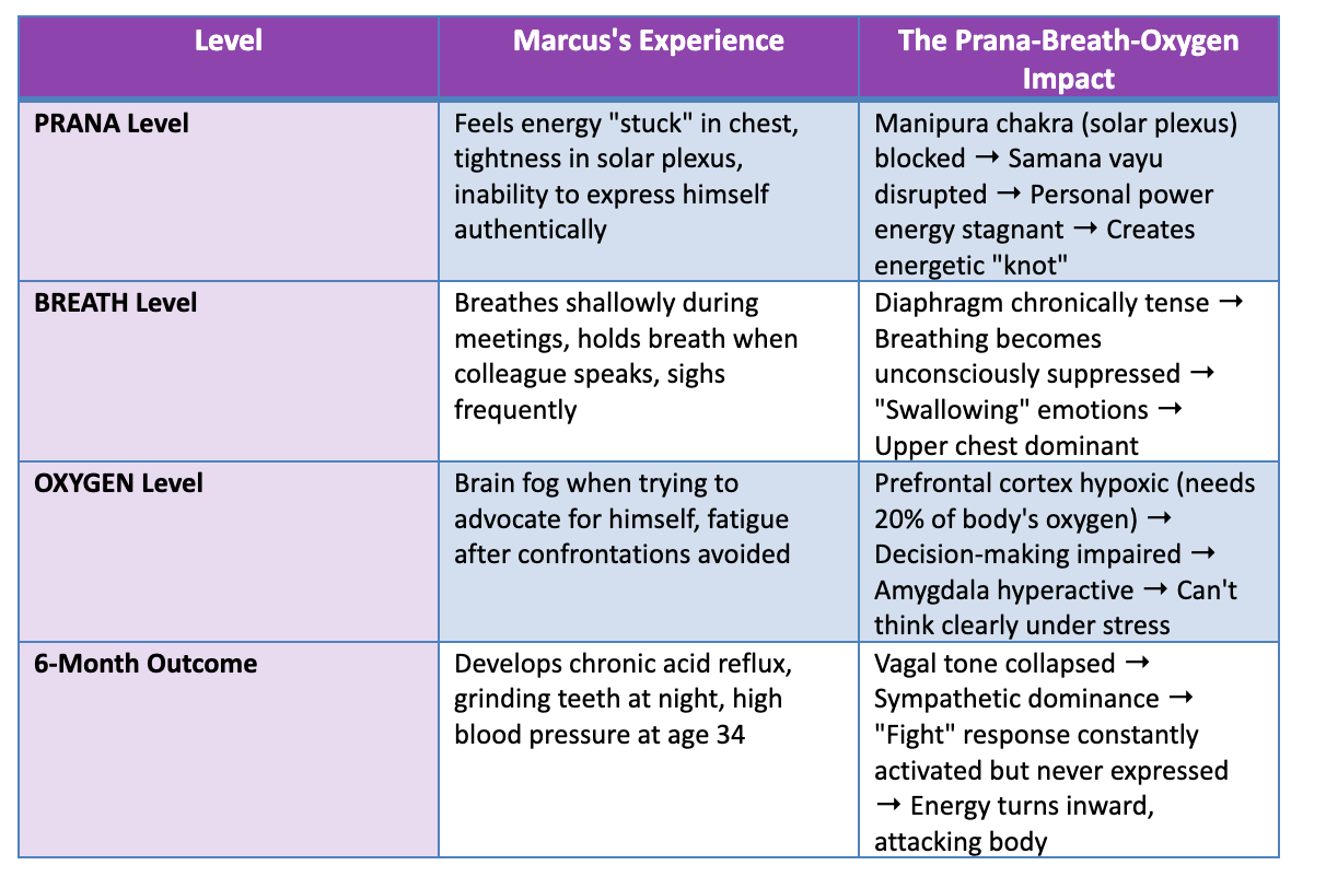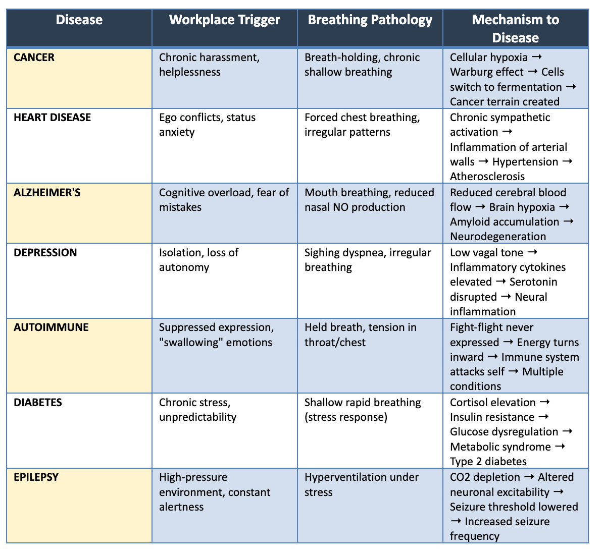 Workplace toxicity—harassment, ego battles, fear culture, toxic politics—isn't happening "out there" in some abstract space. It's happening in your amygdala, your vagus nerve, your diaphragm, your mitochondria. Every toxic interaction is a micro-injury to your breathing pattern. Every disrupted breathing pattern is a step toward disease.