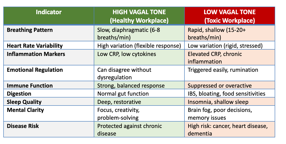 The vagus nerve is the physiological bridge between workplace experience and long-term health. It's literally measuring the safety of your environment and adjusting your biology accordingly.