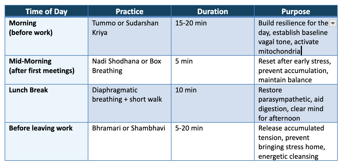 3. Create breathing breaks: 5-minute team breathing practices before high-stress meetings. This is not "woo-woo"—this is performance optimization
