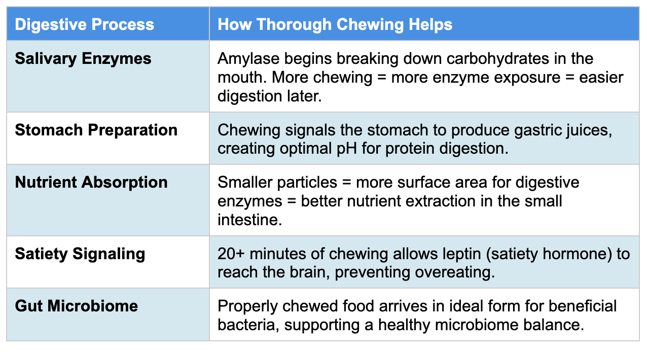 The Key Insight: Digestion is a relay race, not a sprint. Poor chewing means your stomach and intestines must work overtime to compensate, leading to bloating, gas, indigestion, and poor nutrient absorption.